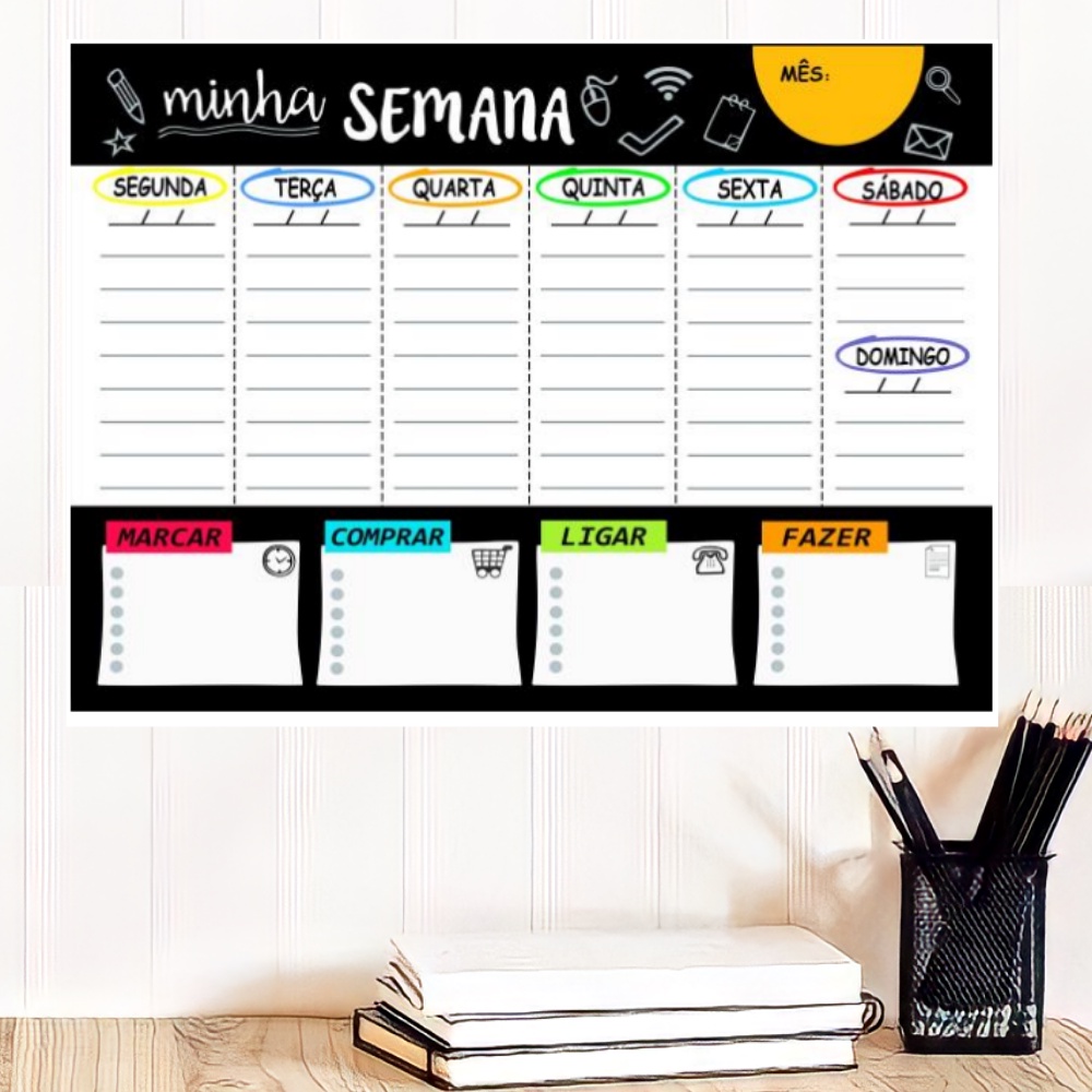 Planner Minha Semana, Organizador De Tarefas, Mural De Recados + Caneta Imã com apagador