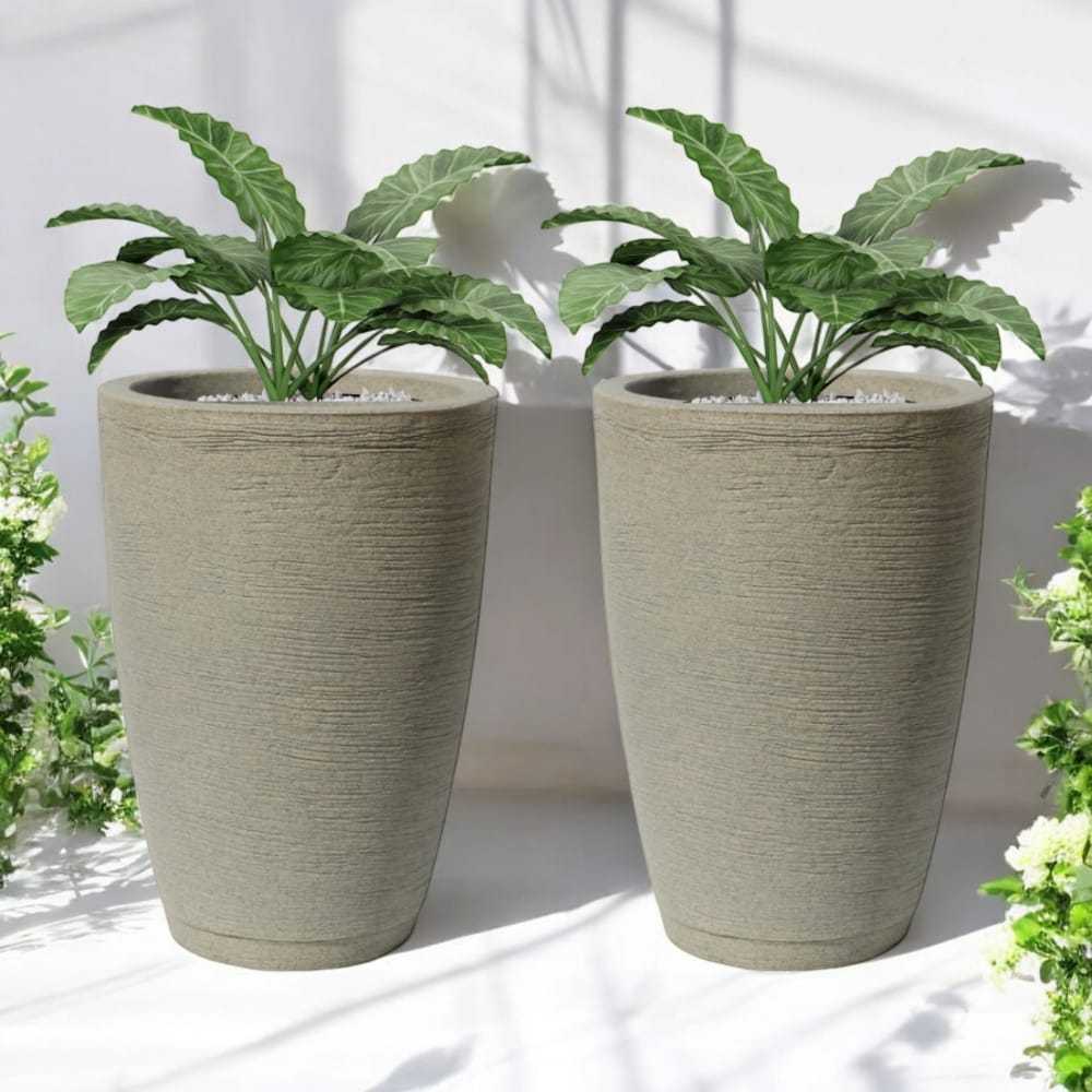 Kit 2 Vasos Polietileno Para Plantas Jardim Sala Casa Luxo Cone Bojo 1 Com Prato
