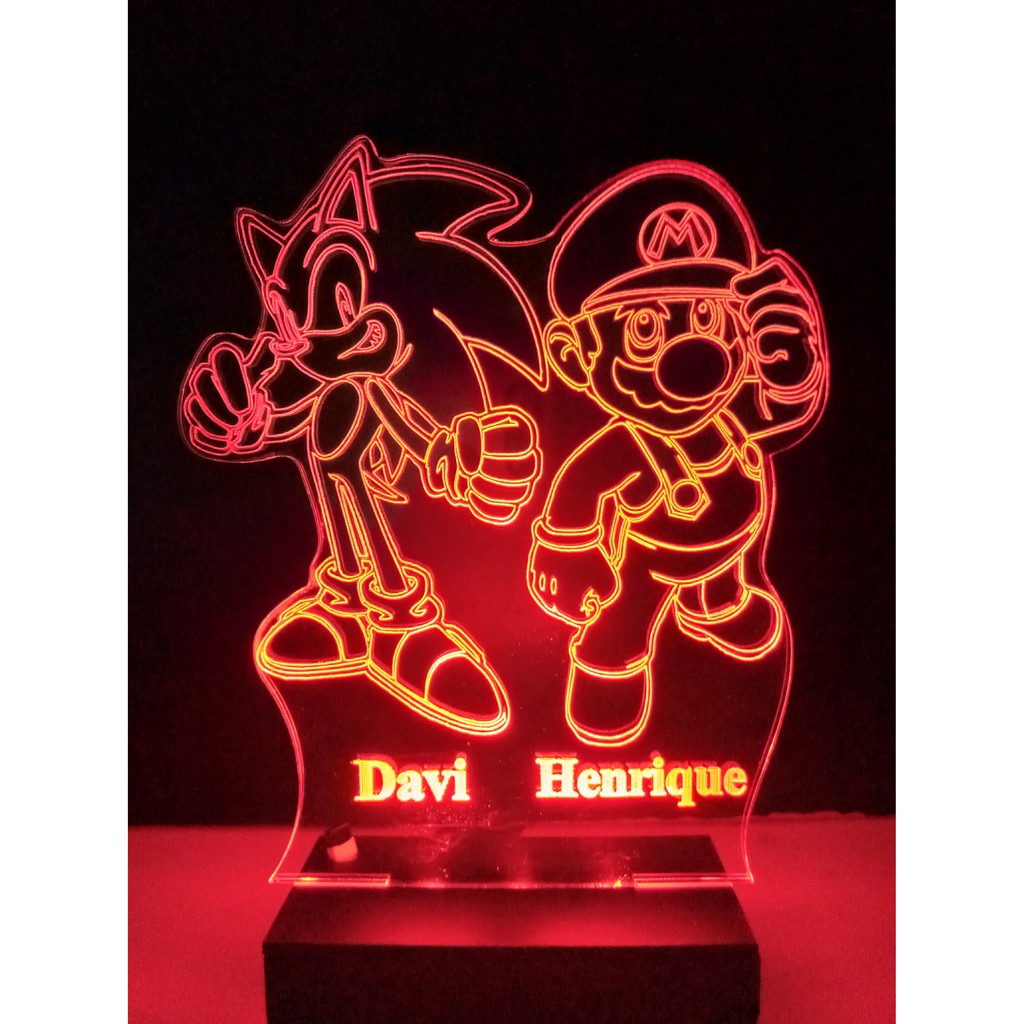 Luminária Abajur Led Sonic e Mario personalizada com seu nome