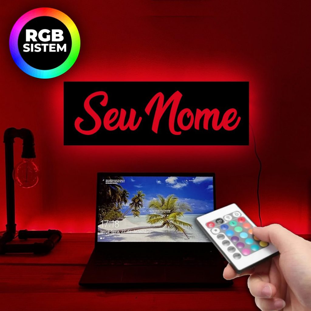 Luminária Personalizada Seu Nome Luminoso com LED RGB (16 cores) com Fonte 12v e Controle