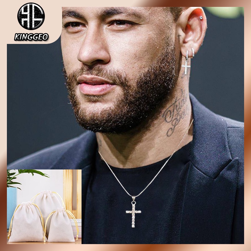 Corrente Colar Masculino com Pingente Cruz Ice Cravejado Banhado a Ouro 18k Cordão Gargantilha Neymar NJR