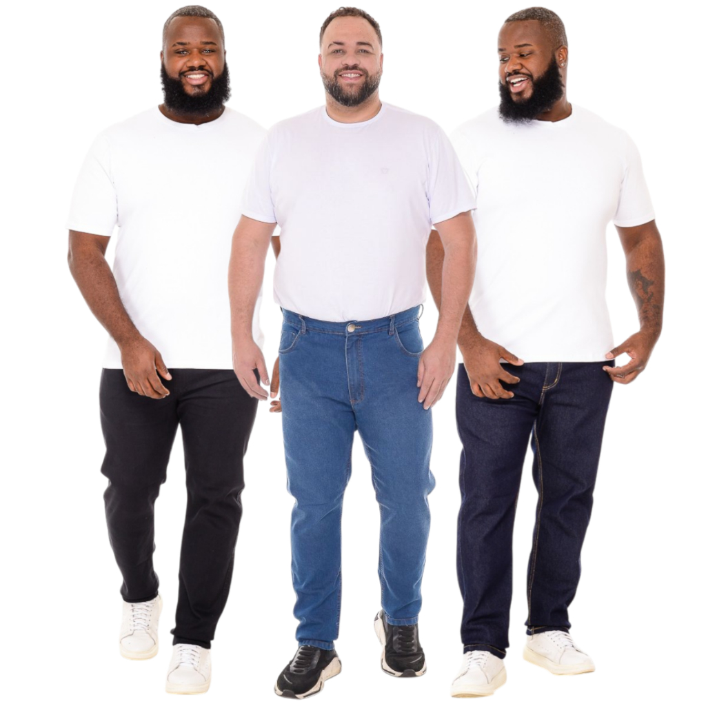 Calça Masculina Plus Size Sarja Com Lycra Colorida - Kit 3 Peças 50 ao 66 - Tamanho Grande - Preta - Branca - Vinho - Verde - Creme - Caramelo - Cinza