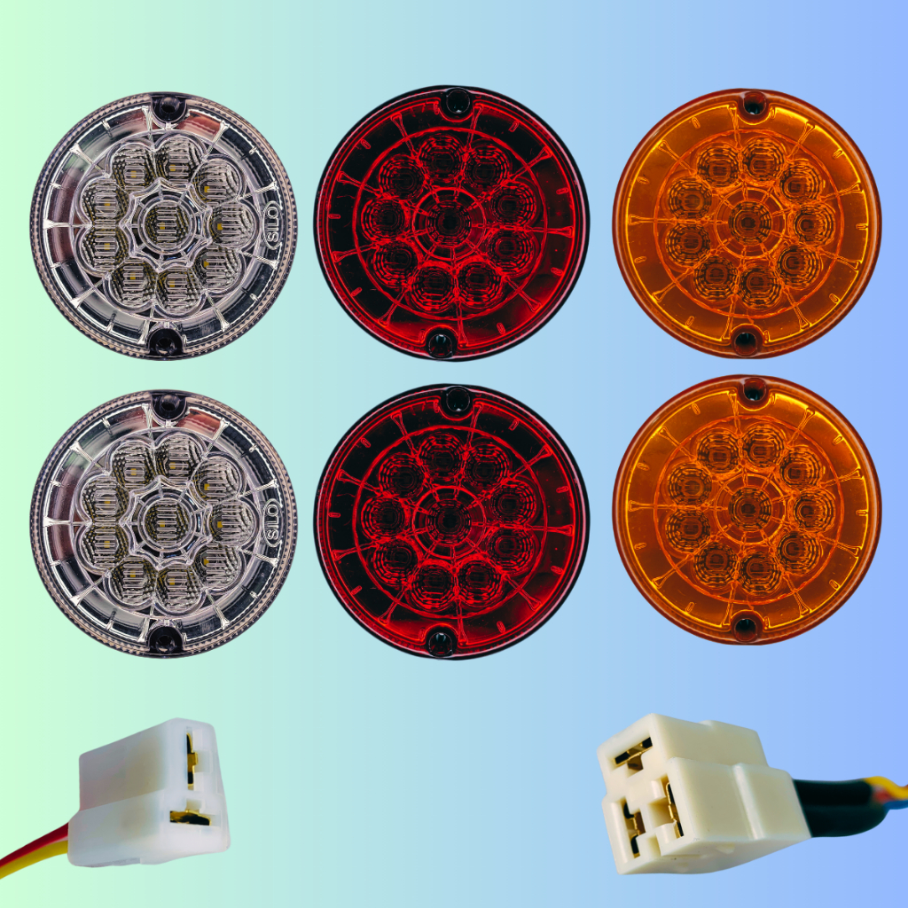 KIT Lanterna Traseira Posição Freio 10 LED VM 12 volts Ø 12.5 cm com Conector - Ônibus Caio / Marcopolo / Caminhão