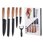 Jogo De Facas Cerâmicas 6 Peças Profissional Descascador Cabo De Madeira Cozinha Aço Inoxidável