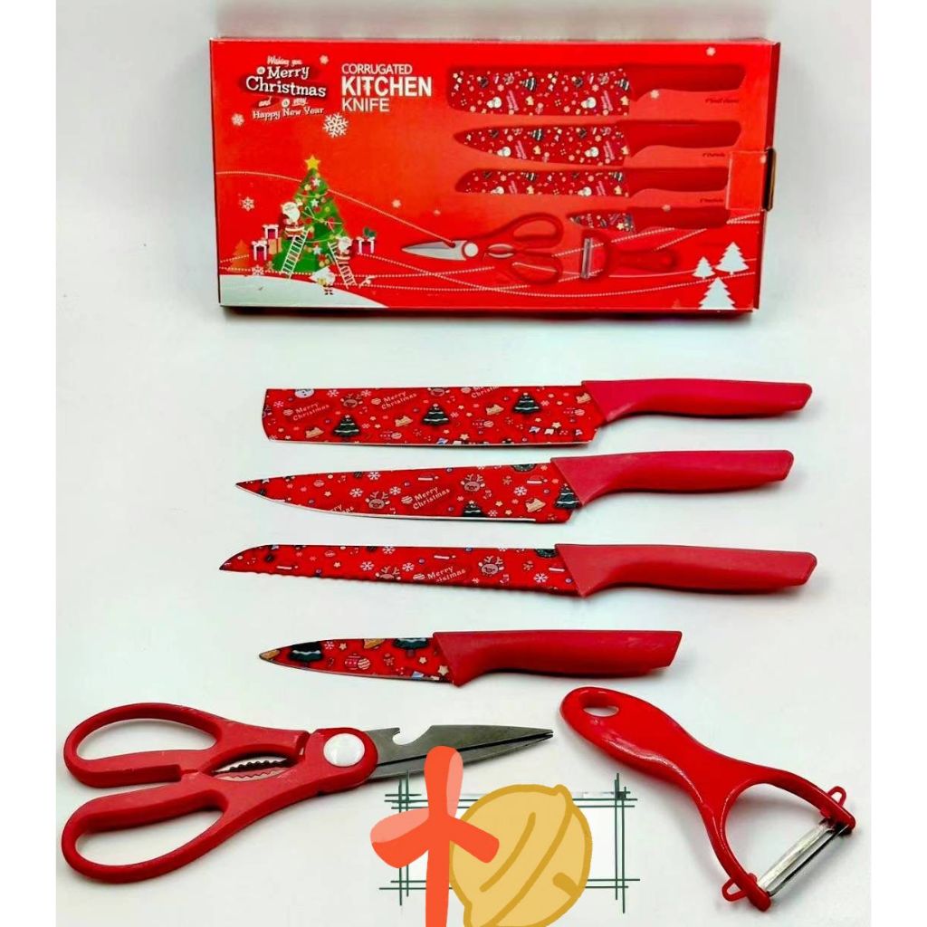Kit 6 peças Jogo de facas Natal de Cozinha Tesoura Inox Conjunto de Facas para Churrasco Profissional Várias Cores