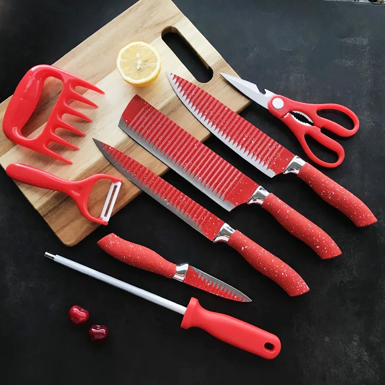 Kit de facas 8 peças jogo de cozinha Profissional churrasco Aço Inoxidável Antiaderente Multiuso