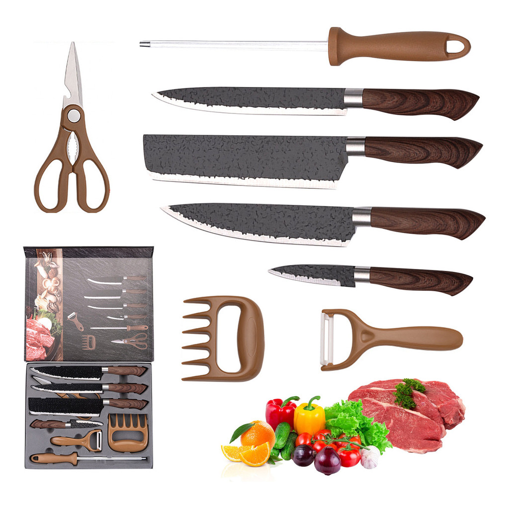 Jogo de Facas 9 Peças Profissional Aço Inoxidável Para Churrasco e Cozinha Quebom