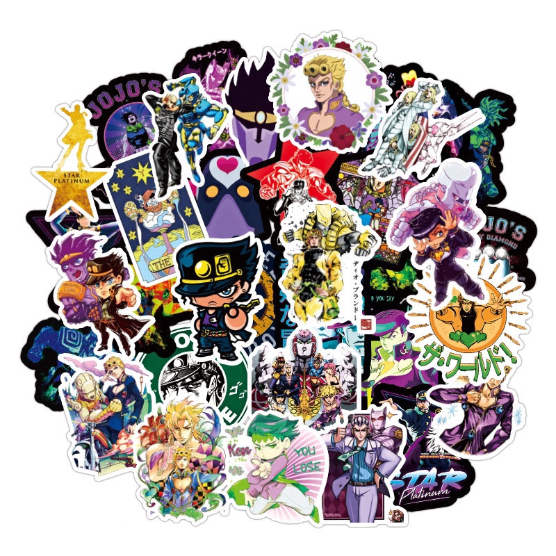 50 Folhas em JOJO's Bizarre Adventure Adesivos Japoneses Difusos à prova d' água para Bagagem Adesivos para Motos Adesivos para Laptop