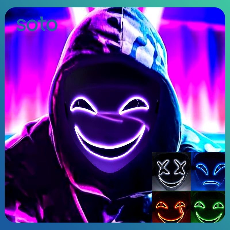 SOTO Máscara Assustadora Brilhante Máscara Luminosa Led Halloween Horror Neon Light Up Cosplay Festa Máscara Fstival Fantasia Suprimentos