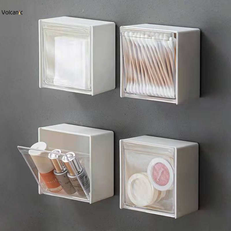 Caixa De Armazenagem Multifuncional Montada Na Parede Transparente Auto-Adesiva Para Pequenos Objetos Maquiagem Sem Furos Jóias Domésticas