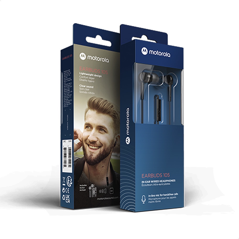 Fone De Ouvido Motorola Earbuds 105, Anti Ruido Com Microfone - Preto