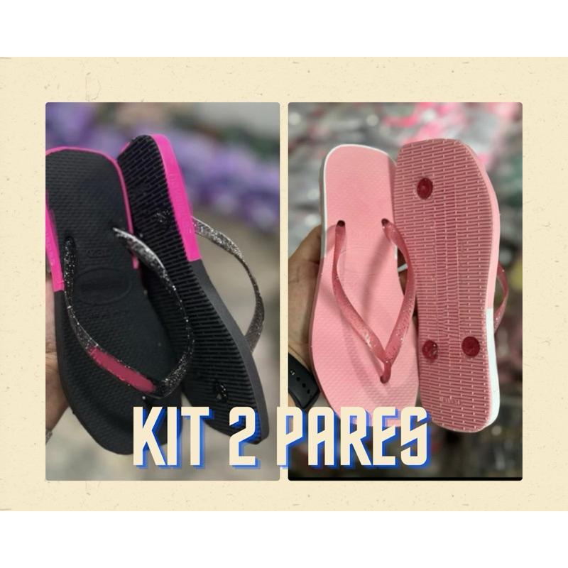 kit 2 chinelo de dedo feminino gliter slim kit com dois pares