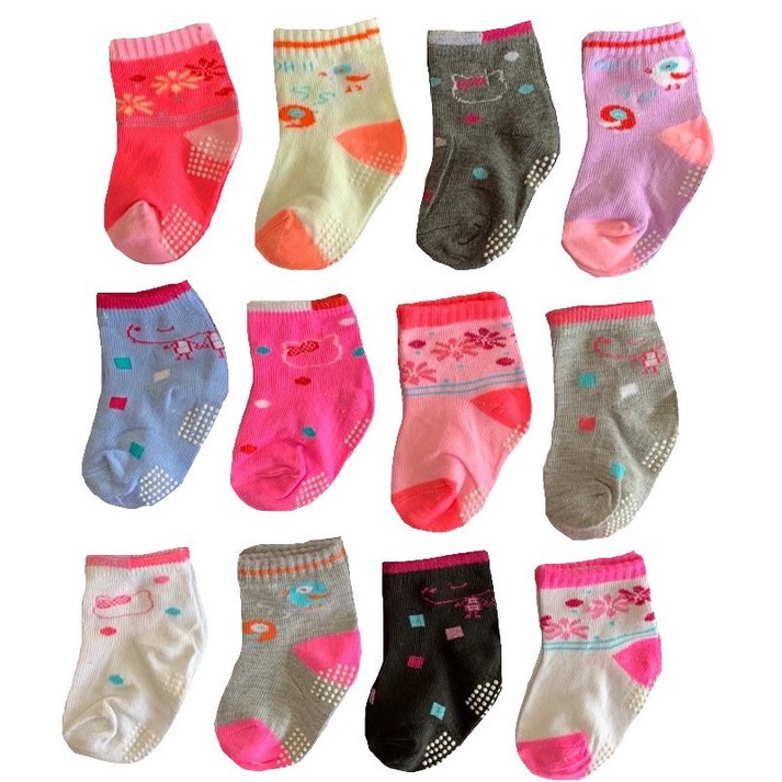 Kit 12 pares de meias para recém nascidos e bebê feminino com antiderrapante