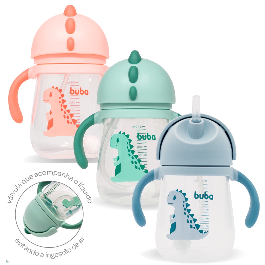 Copo Com Alça Buba Transição Dino Para Bebe Criança Com Canudo Copo de Treinamento Válvula