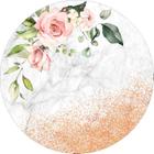 Painel de Tecido Sublimado Redondo Flores Rosas e Mármore Fundo Glitter c/ Elástico