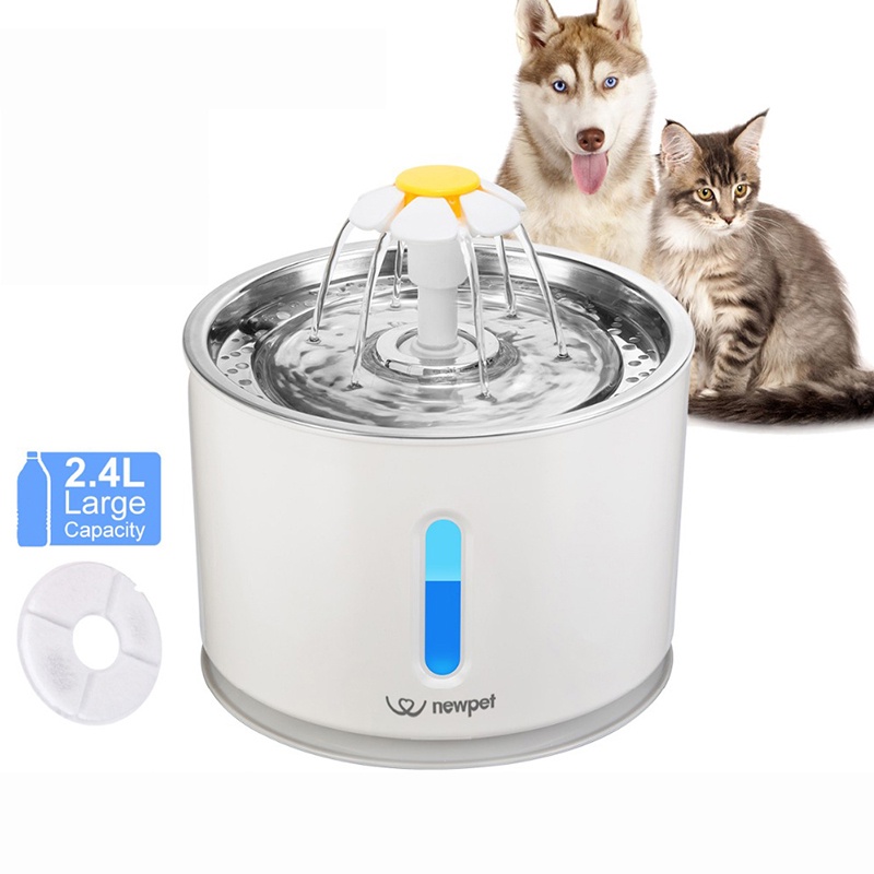 Fonte De Água Do Gato Automático 2,4L Filtro Interior LED Beber Para De Dispensador Gatos De Estimação Alimentador Filtros