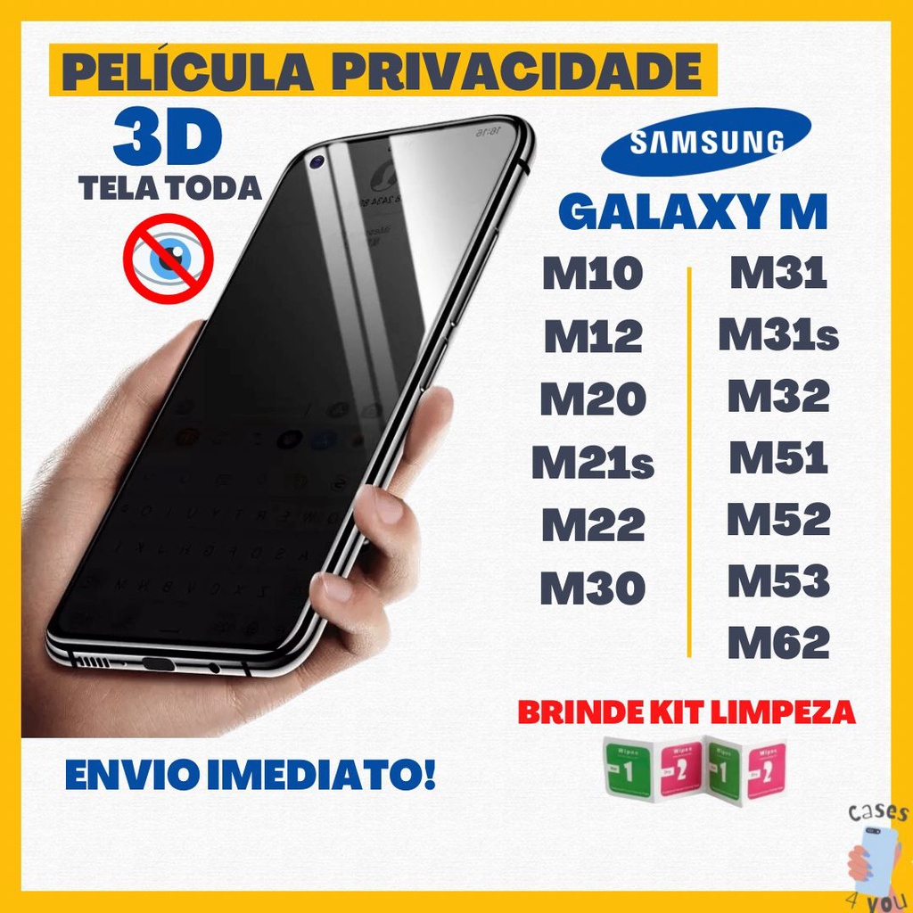 Película 3D Privativa Samsung Galaxy M Privacidade Anti Espião Espionagem Vidro M10 M12 M20 M21s M22 M30 M31 M31s M32 M52 M53 M62