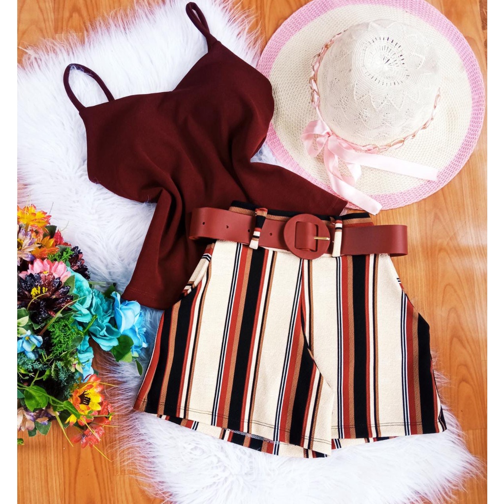 Conjunto feminino Short +Cinto + Blusa com Bojo C52