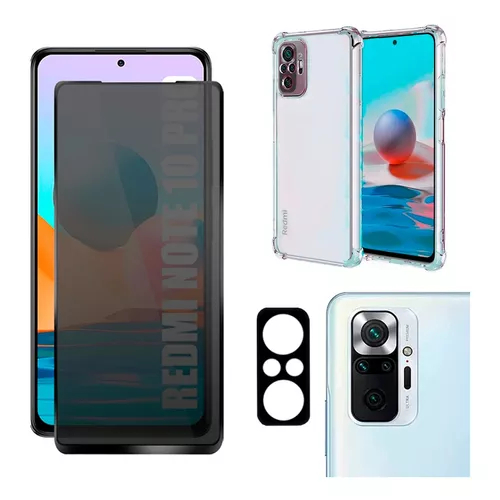 Kit Para Xiaomi Redmi Note 10/Note 10s Película Privacidade + Capa Capinha Anti Shock+Pelicula Camera 3D