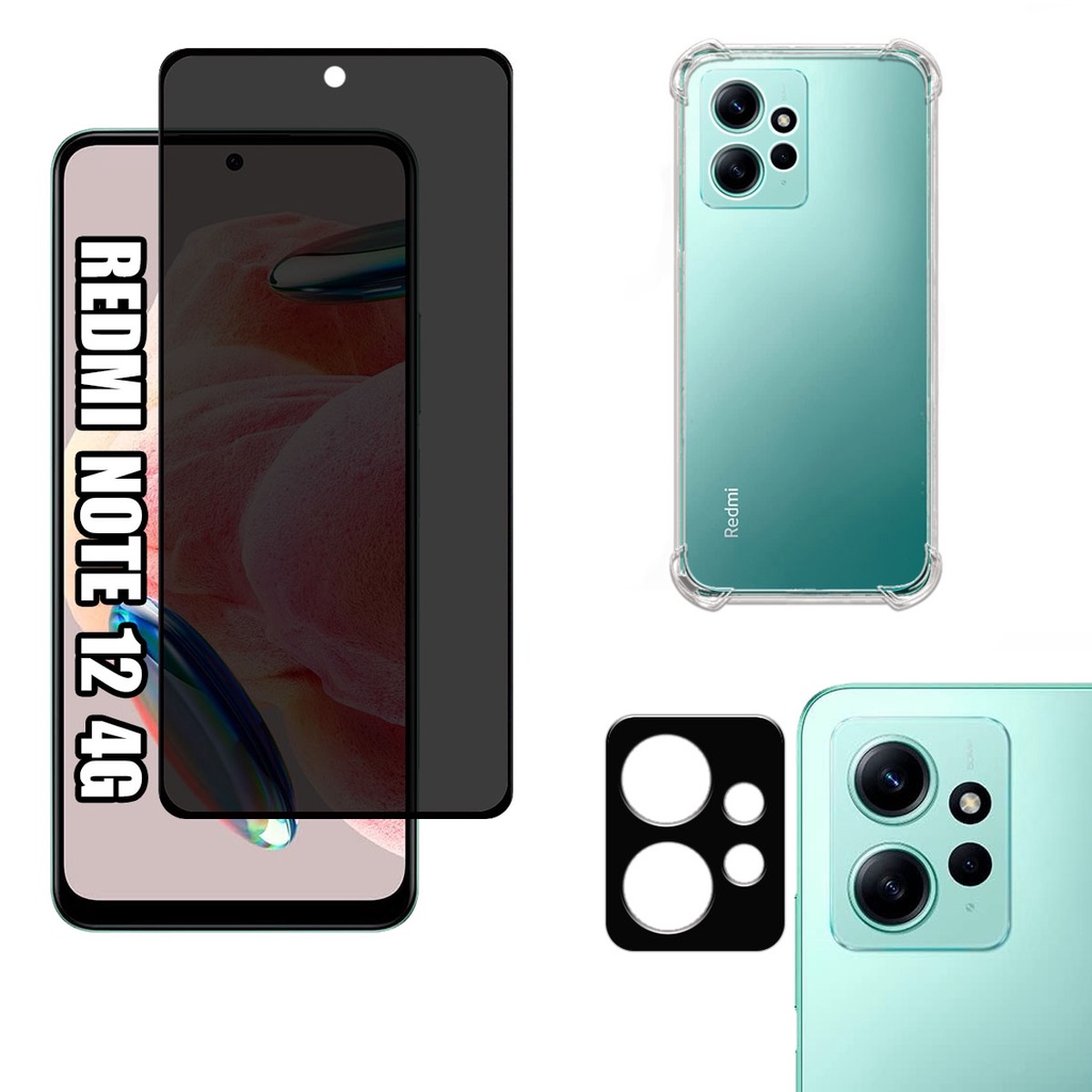 KIT Para Xiaomi Redmi Note 12 4g | Película de Privacidade 3D - Capa Capinha Anti Shock - Película da Câmera 3D