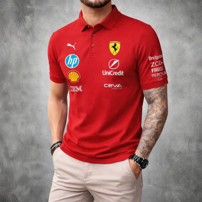 Camisa Polo Ferrari F1 Masculina Camiseta Várias Cores