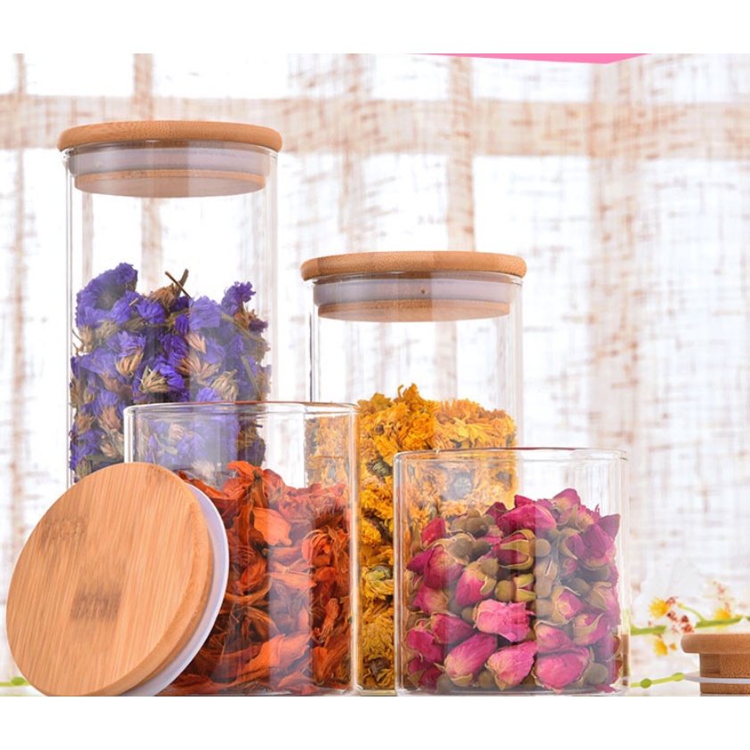 4 Potes De Vidro Com Tampa De Bambu Herméticos (conjunto)550+750+950+1300ml Potes De Vidro Mantimentos