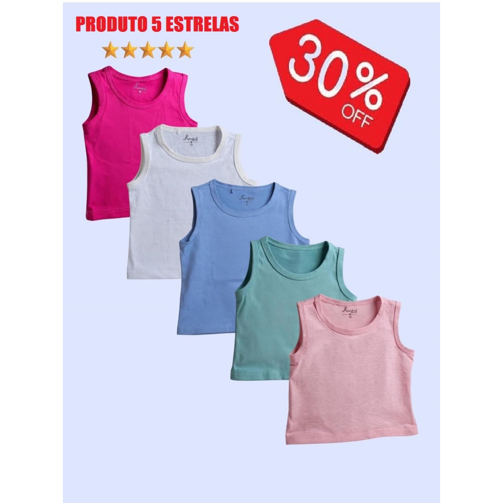 Regata Estonada, malha 100% algodão .( kit com 5 peças)