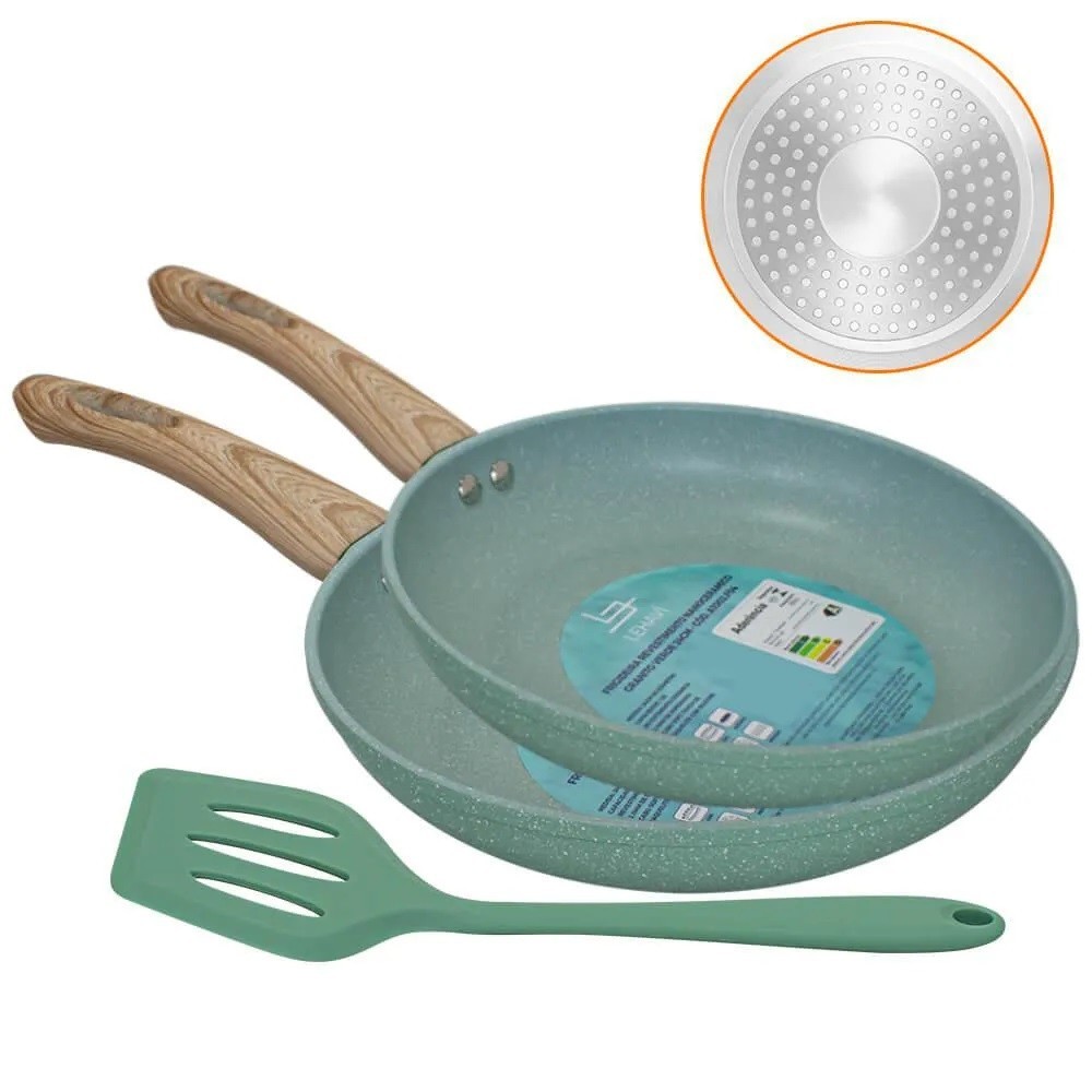 Kit 2 Frigideira Cerâmica Indução Gás Frita Sem Óleo Antiaderente Verde