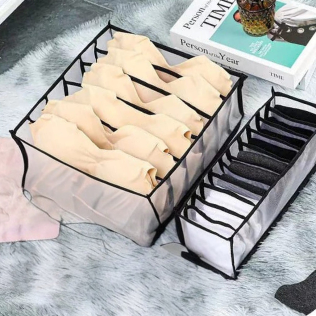 KIT 2 COLMEIAS ORGANIZADORAS DE GAVETA COM 6 DIVISÓRIAS PARA CALCINHAS, SUTIÃS, MEIAS E BLUSAS