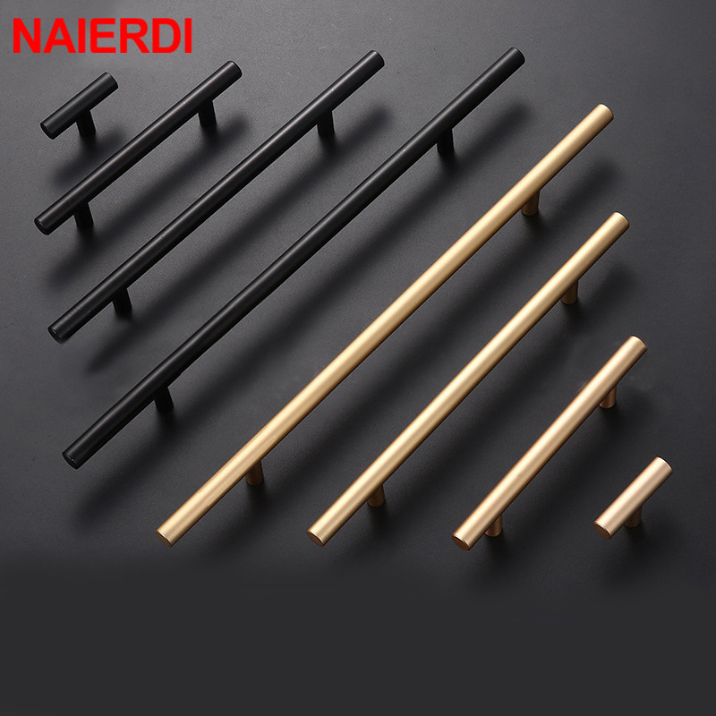 NAIERDI Porta Reta Dourada Escovada Puxadores De Móveis De Cozinha Em Aço Inoxidável Preto