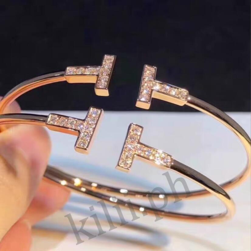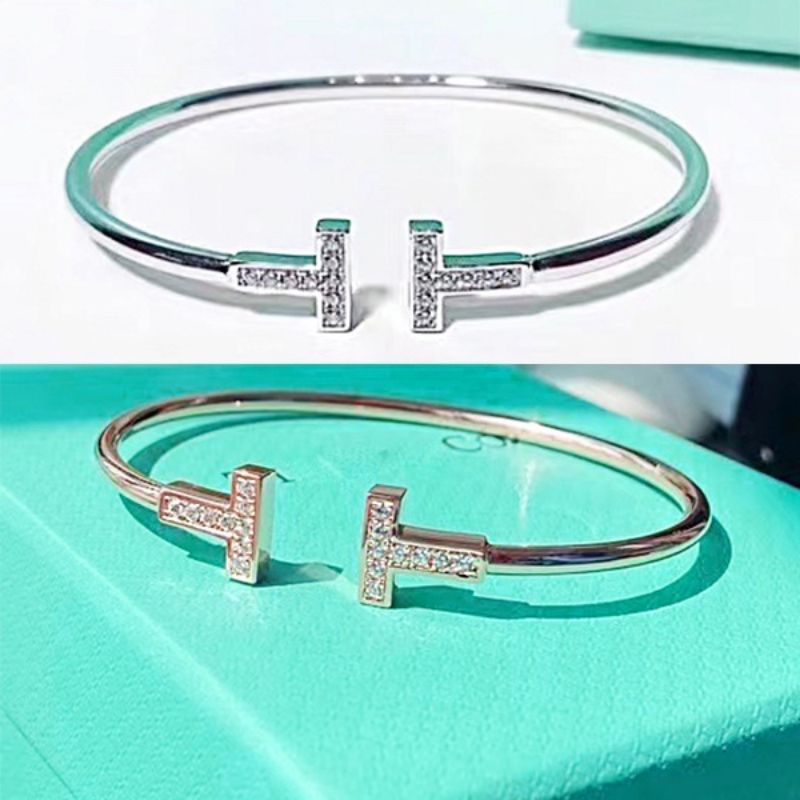 pulseira prata925 tiffany fêmea T bracelet com diamantes