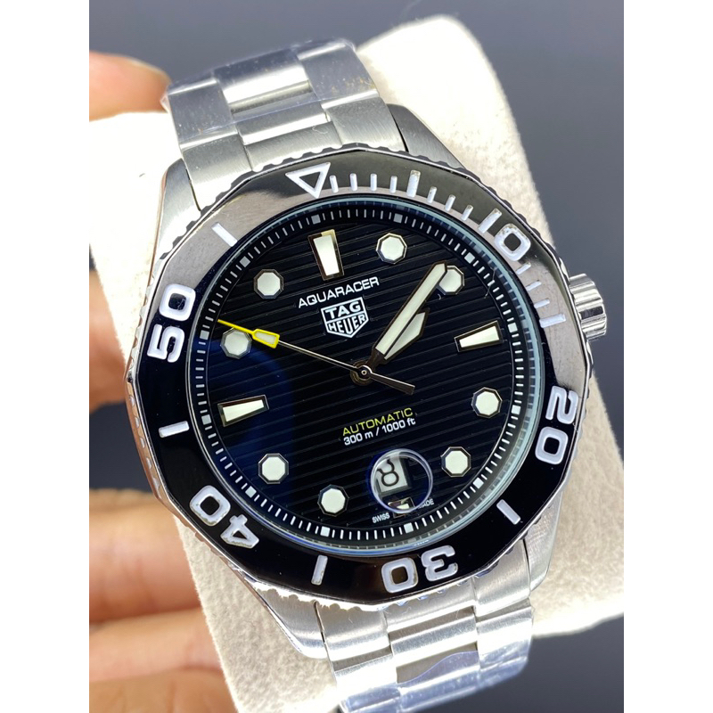 Relógio T@GHeuer Modelo Aqu@r@ceR* Vidro safirado Fundo preto Bezel em ceramica preto Máquina Citzen Movimento automático Caixa aço inoxidável Pulseira aço inoxidável Fecho conforme original A próva d’água.