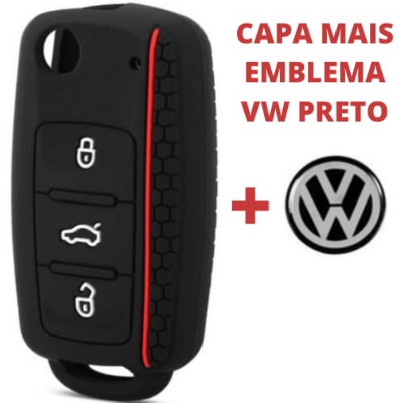 Capa Proteção mais emblema para Chave Canivete volkswagen Gol Voyage Polo Up Jetta