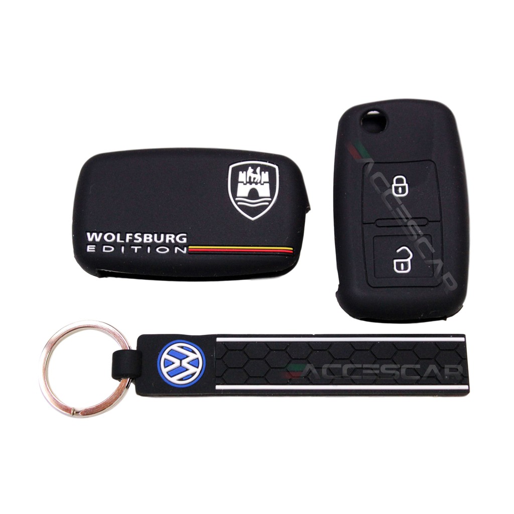 Kit Capa Silicone Chave Canivete 2 Botões Volkswagen Wolfsburg + Chaveiro Volkswagen Jetta Golf Up Tiguan Fox Gol