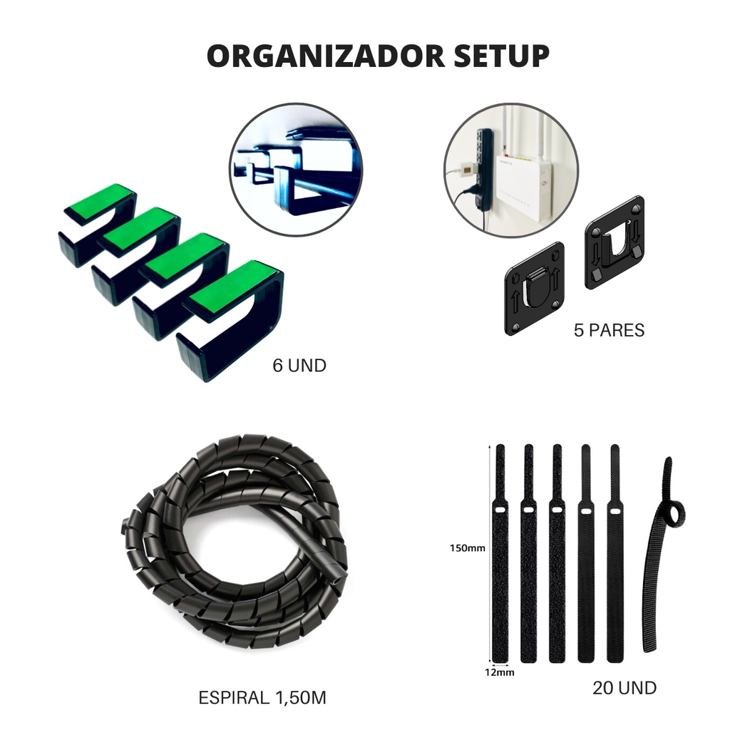 KIT ORGANIZADOR DE FIOS E CABOS PARA SETUP GAMER