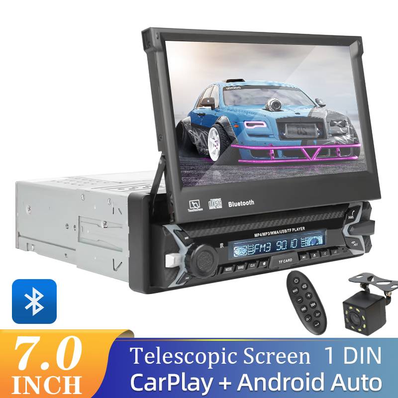 Rádio 1 Din Carro Tela Retrátil Android Auto Carplay Reprodutor Multimídia De 7 Polegadas MP5 Player Com Bluetooth FM AUX