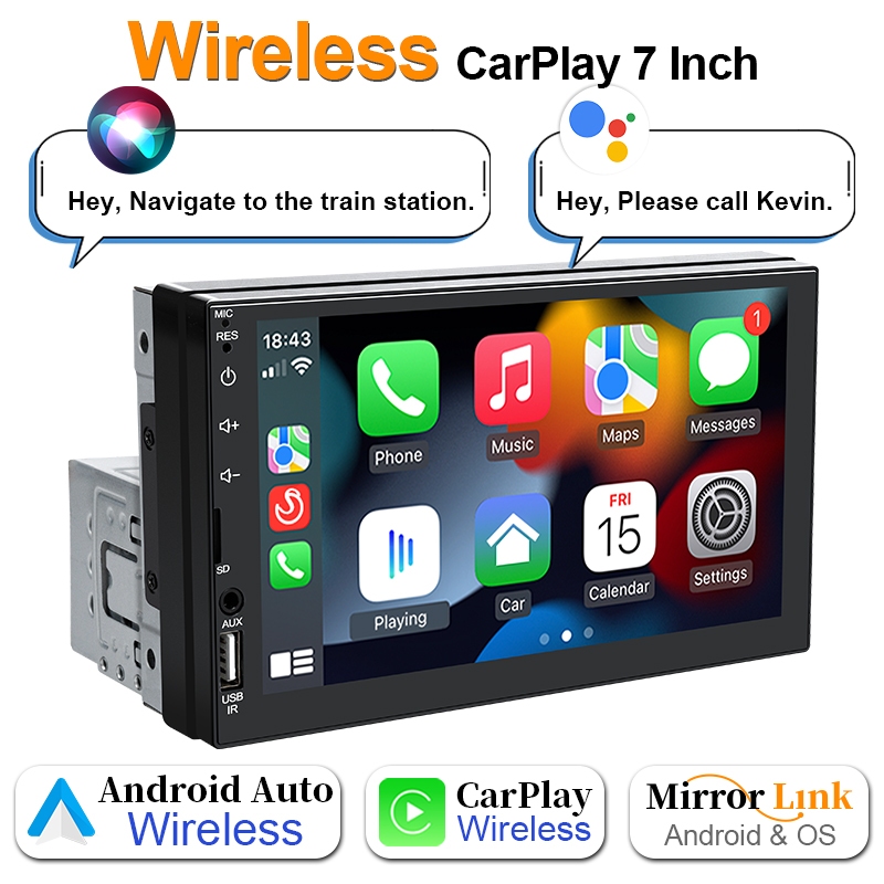 Carplay Multimídia Central Sem Fio 1 Din MP5 Bluetooth 7 Polegadas USB/AUX/TF Com Android Auto
