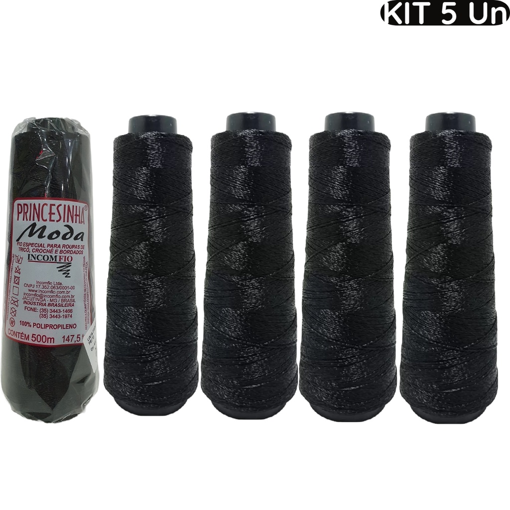 Kit 5 Princesinha Moda Fina Cor Preto Cone com 500 Metros Incomfio Tranças, Nagô e Artesanato
