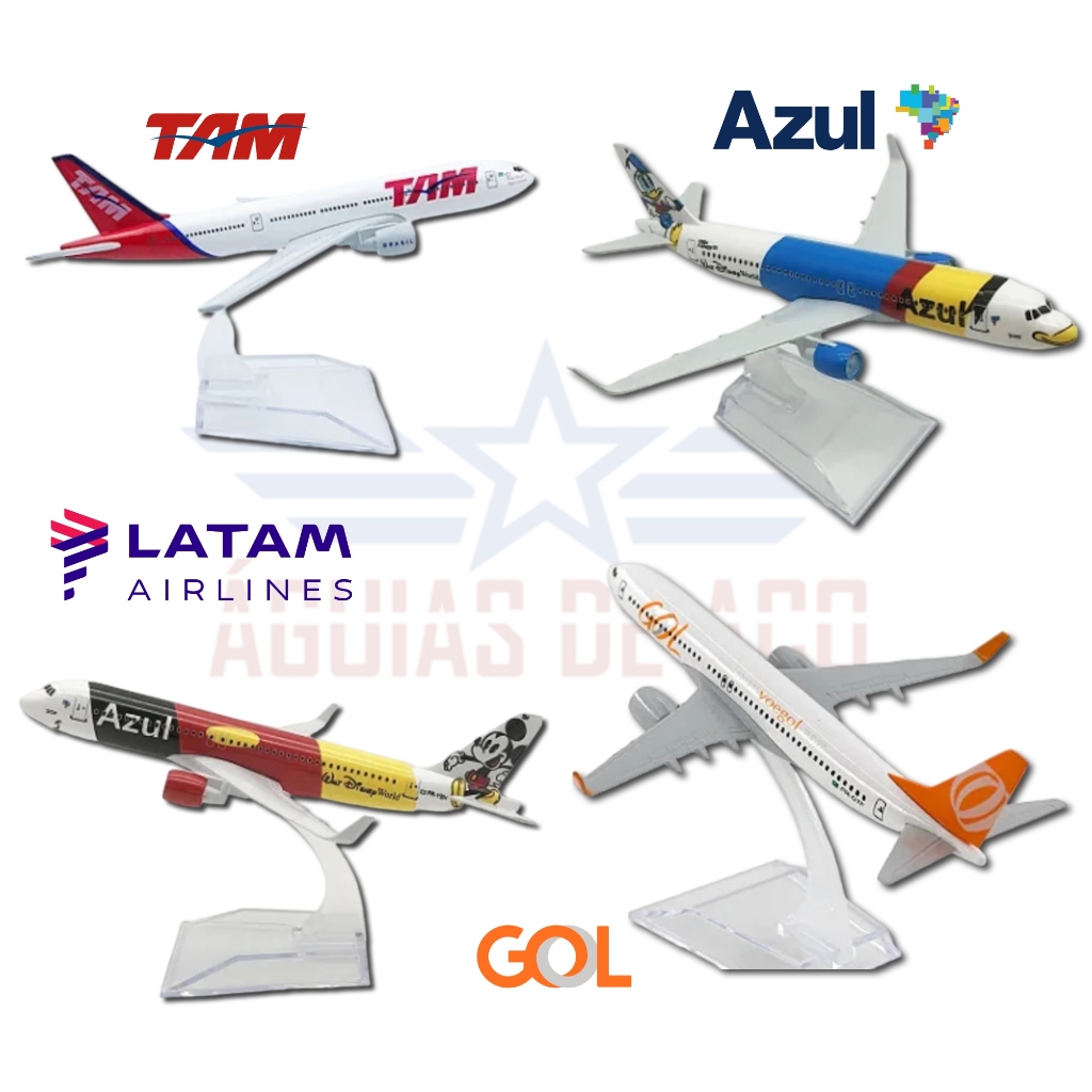 Miniatura de avião comercial - Metal - GOL, TAM, LATAM, AZUL