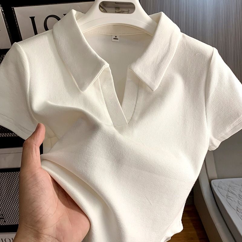 Camiseta de manga curta para mulheres 2023 verão nova versão coreana de slim-túnica e magra camisa polo, camisa de fundo de camisola de corpo aberto