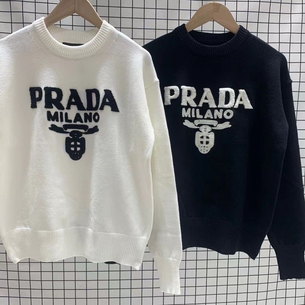 Prada 2023 letras bordado camisola de malha feminina outono e inverno nova versão coreana solta, estilo preguiçoso, versátil NXEX