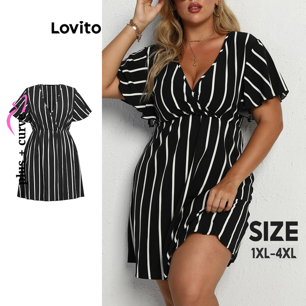 Lovito Top Curvo Casual Listrado Com Folho Plus Size Para Mulheres LBE05150 (Azul)