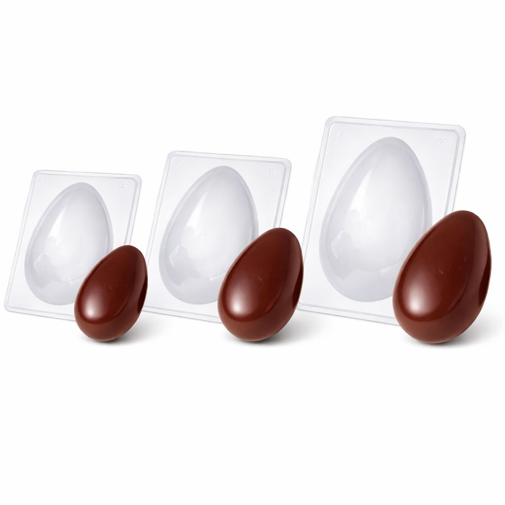 Forma com Silicone para Chocolate - Ovo de Páscoa de 100g, 150g, 250g, 350g, 500g (3 Partes) BWB - Trufa, Bombom, Barras Para Rechear