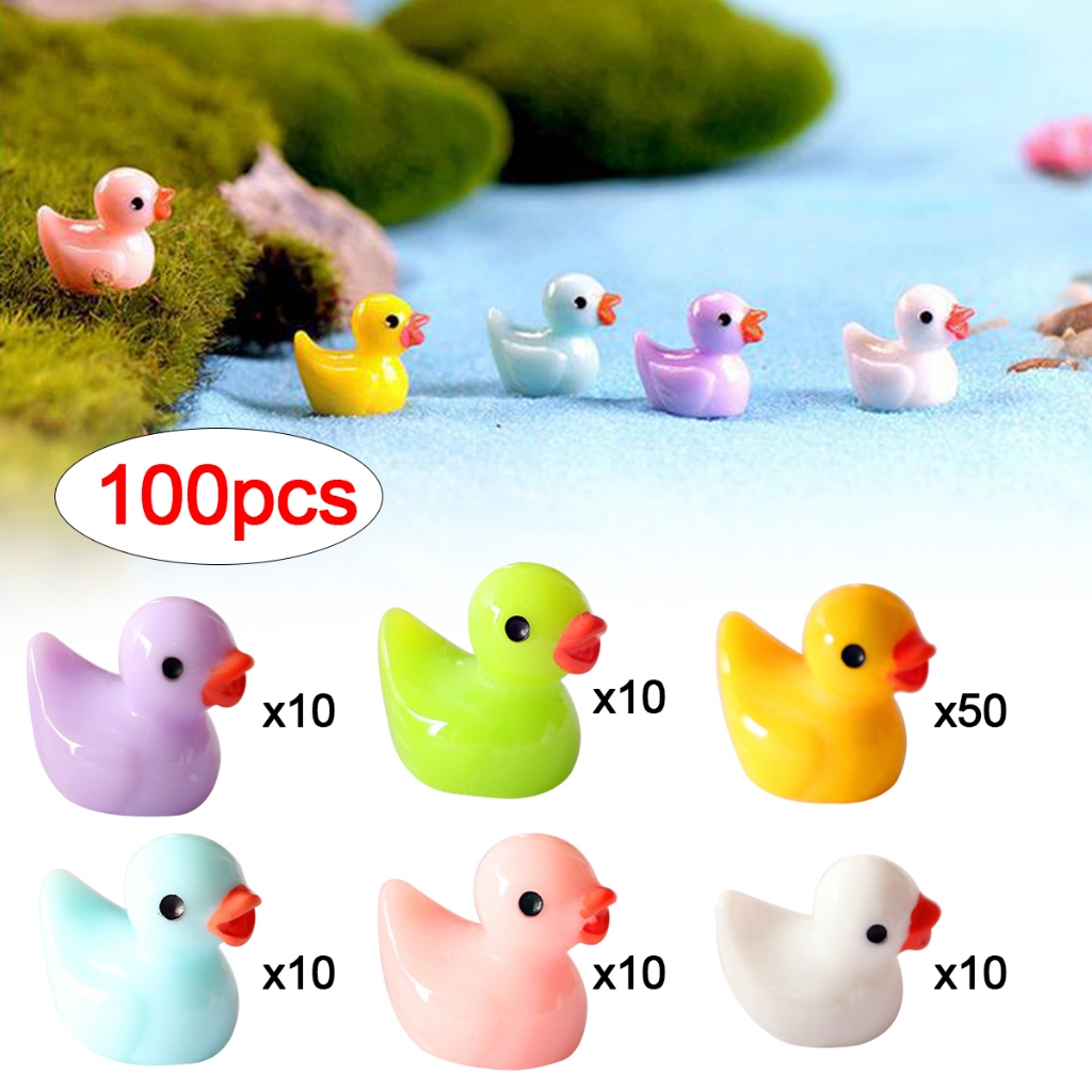 100Pcs Mini Patos Decoração Casa Pato Resina Colorida Acessórios Para Micro Animais Bonitos Jardim Fada Brinquedos De Festa De Bricolage