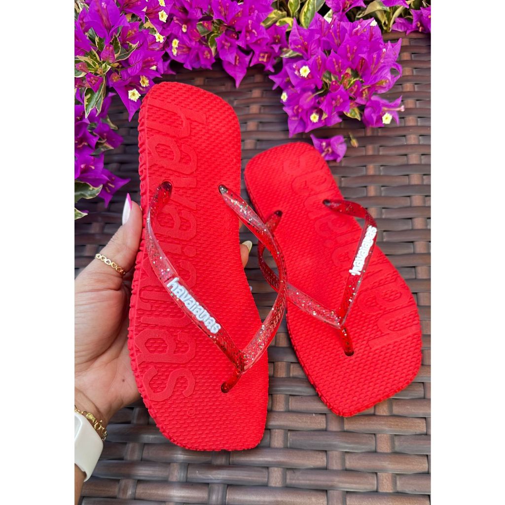 Kit com 12 Pares de Chinelos Coloridos Correia de Gliter