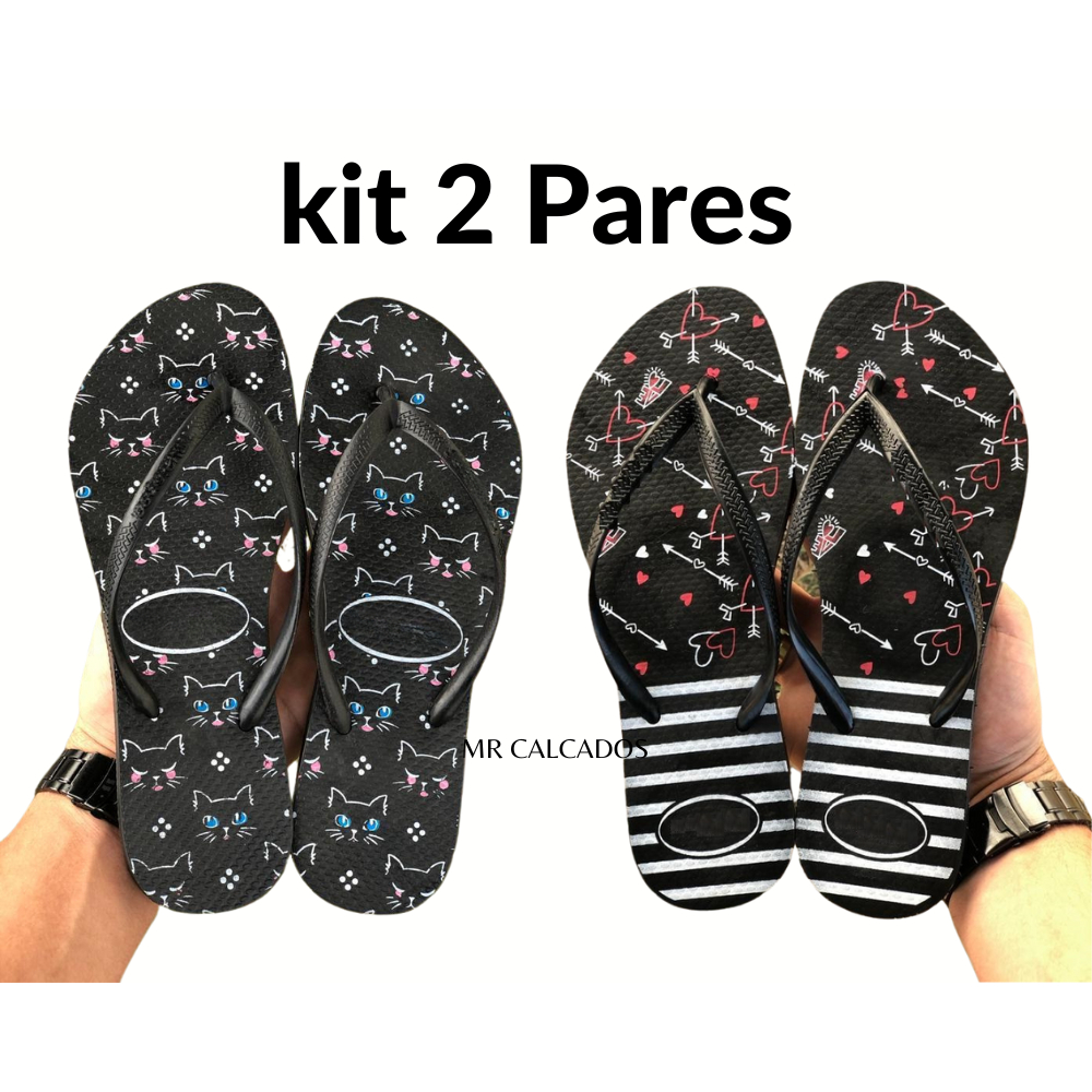 Kit 2 Pares de Chinelos Estampados Promoção