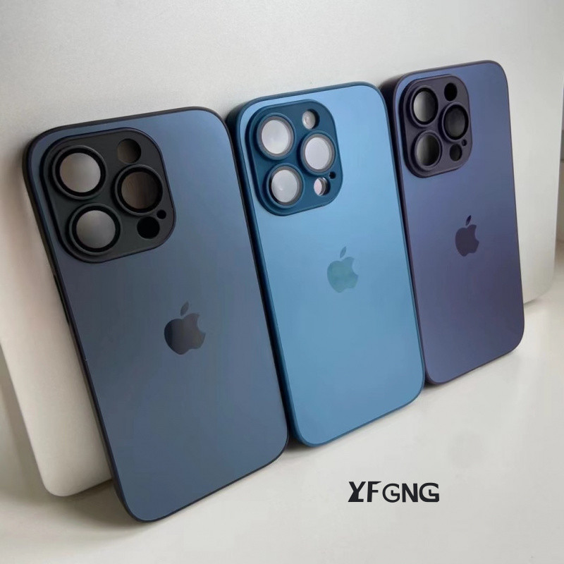 Capa Luxuosa Anti-Choque Fosca Para iPhone 16 15 14 13 12 11 Pro Max Traseira De Vidro Preto Com Filme De Lente HD