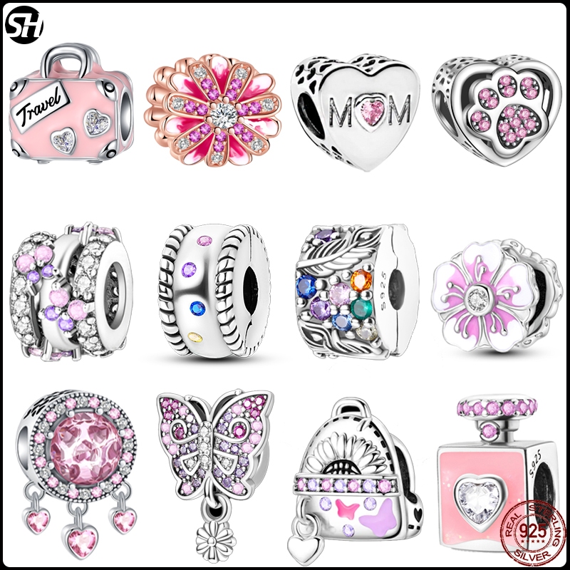 2023 charme pulseira jóias newsilver 925 clipe mau olho ouro carta rolha rosa série flor perfumada pingente de água diy contas finas caber original