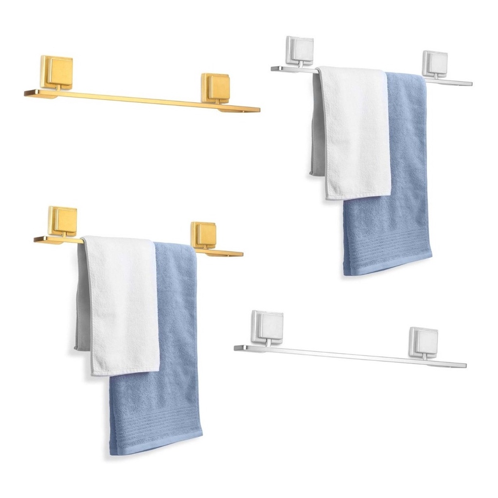 Porta Toalha De Banho Aço 3m Sem Furos Dourado Prata Arthi Decoração Dourado Prata Fosco Banheiro Suporte Para toalhas sem furo