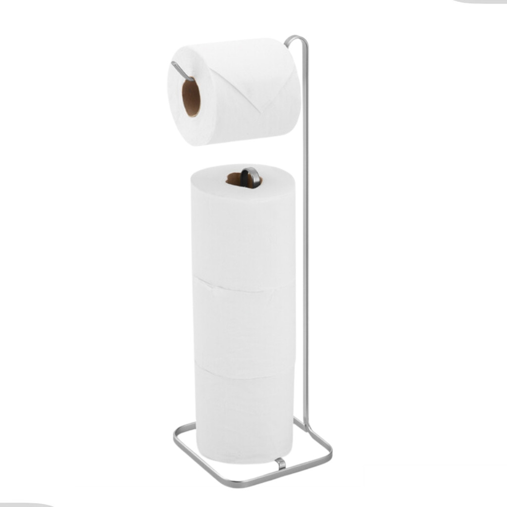 Suporte Porta Papel Higiênico de Chão Banheiro Lavabo Para 4 Rolos Piatina Prata Cromo Fosco Arthi